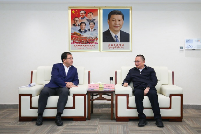 祁騰武對張旭陽一行來訪表示歡迎,并介紹了西藏開投集團概況、生產(chǎn)經(jīng)營和投資建設(shè)情況。他表示,光大銀行作為國內(nèi)領(lǐng)先的綜合性金融機構(gòu),在綠色金融、創(chuàng)新金融服務(wù)方面具有顯著優(yōu)勢。西藏開投集團與光大銀行已有良好的合作關(guān)系,期待與光大銀行在多層次、多領(lǐng)域開展更加深入務(wù)實合作,歡迎光大銀行參與西藏開投清潔能源開發(fā)建設(shè),共同探索“科技賦能產(chǎn)業(yè)、金融助力發(fā)展”新路徑,助力地區(qū)經(jīng)濟社會發(fā)展和國家“雙碳”戰(zhàn)略目標實現(xiàn)。